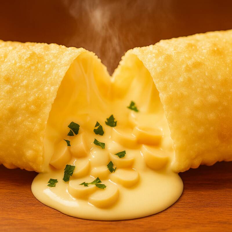 Pastel bem cremoso que acompanha dois tipos de queijo, o mussarela , Catupiry chegando bem derretido na sua casa e quentinho, montado e frito na hora.! Atenção: na compra de 3 pastéis ganha 1 Dolly 350ml grátis!