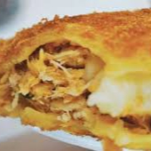 Frango desfiado, cheddar e milho, finalizada com batata palha