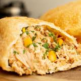 Calabresa moída, requeijão e milho, finalizada com batata palha