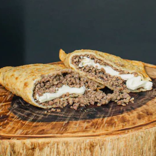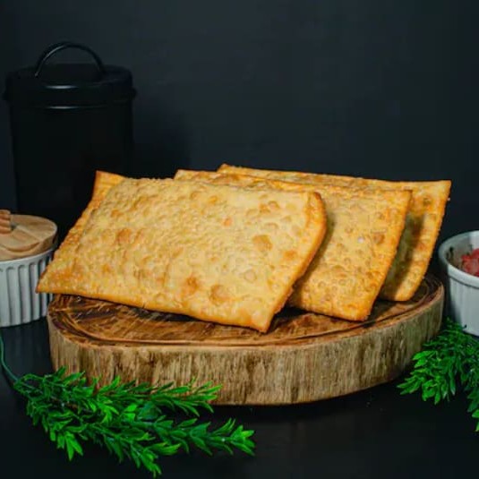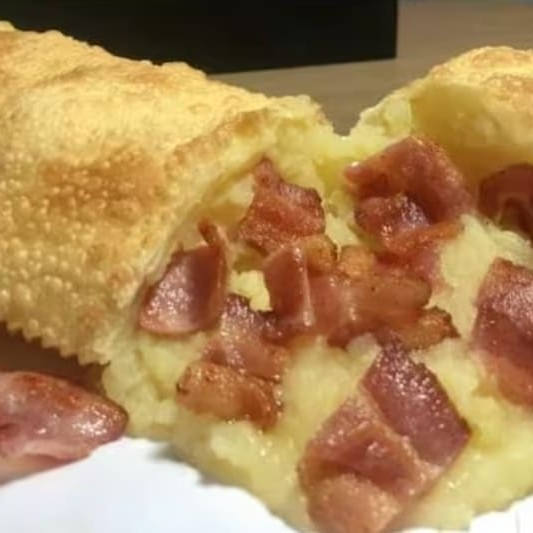 Carne Moída com Calabresa e Catupiry Original, numa massa crocante e sequinha, Pastel de 20x10cm, recheado de ponta a ponta, preparado e frito na hora. *imagem ilustrativa