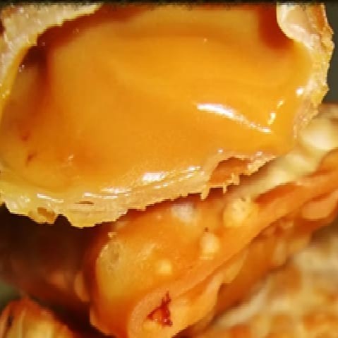 Carne Moída com Cheddar,numa massa crocante e sequinha, Pastel de 20x10cm, recheado de ponta a ponta, preparado e frito na hora. *imagem ilustrativa