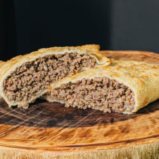 Carne Moída, numa massa crocante e sequinha, Pastel de 20x10cm, recheado de ponta a ponta, preparado e frito na hora. *imagem ilustrativa