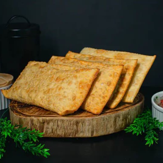 Queijo Mussarela, numa massa crocante e sequinha, Pastel de 20x10cm, recheado de ponta a ponta, preparado e frito na hora. *imagem ilustrativa