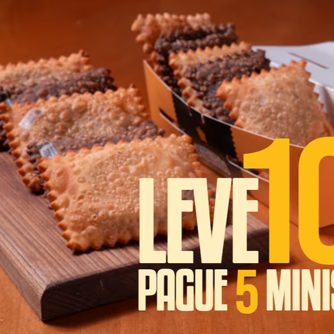 Na compra de 5 mini pastéis, você ganha mais 5 na hora!