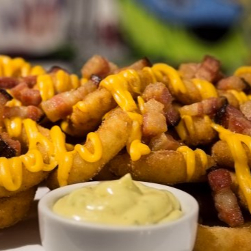 Ela acompanha ketchup, maionese verde da casa, mostarda, molho barbecue e bacon (caso não queira algum molho e só enviar um lembrete que não colocamos)