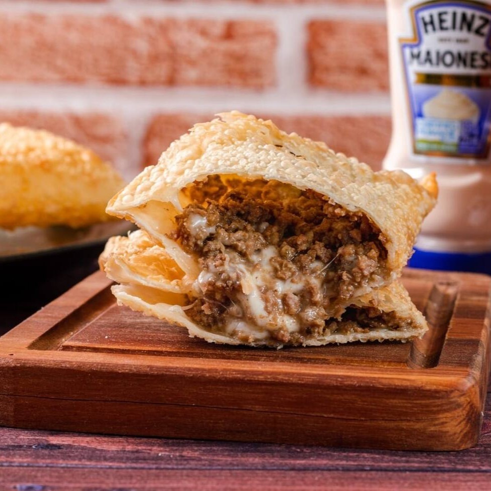 Uma combinação irresistível de carne suculenta e queijo derretido, envoltos em uma massa crocante e dourada. Cada mordida é uma explosão de sabor que vai conquistar seu paladar!