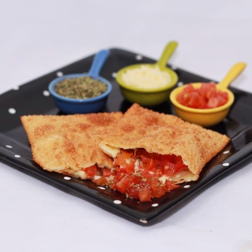 Pastel da bruxa do 71 queijo mussarela com tomate seco e orégano