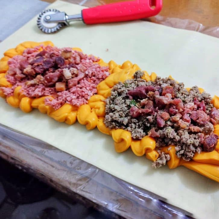 O delicioso Pastel da Bruxa Baratuxa Carne Moída ao Molho Bolonhesa Mussarela Presunto