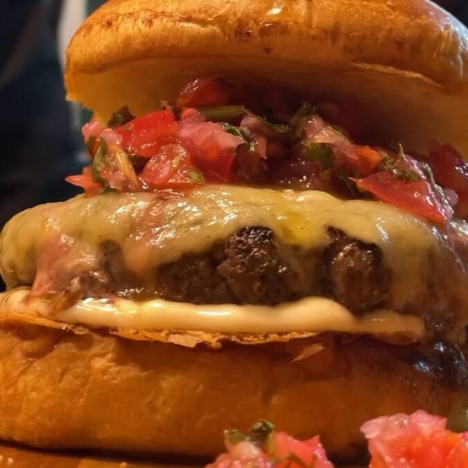 Pão brioche, hambúrguer Seara de 100g, acompanha: queijo, molho da casa e vinagrete.!