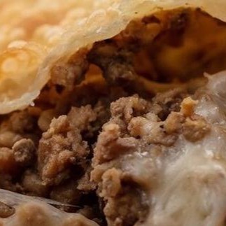 Massa Crocante e Sequinha , Carne Temperada e Mussarela