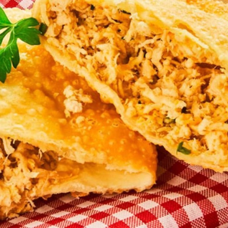 Massa Crocante e Sequinha com Frango Temperado e Mussarela