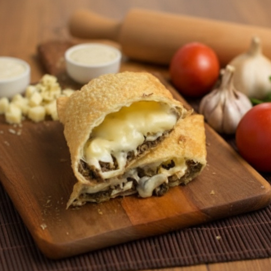 Carne moída cuidadosamente temperada, refogada com azeitona sem caroço e Catupiry scala.