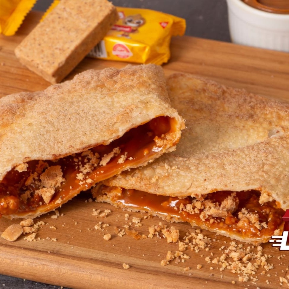 Uma das melhores combinações! Doce de leite cremoso com paçoquinha! Uma delicia! Acompanha açúcar e canela! (Não é possível retirar ou acrescentar ingredientes. Imagens ilustrativas) pastel doce, pastel junino, pastel festa junina, pastel de paçoca, paçoca, doce junino _ _#carne#queijo#pastel#calabresa #Catupiry#palmito#atum#chocolate