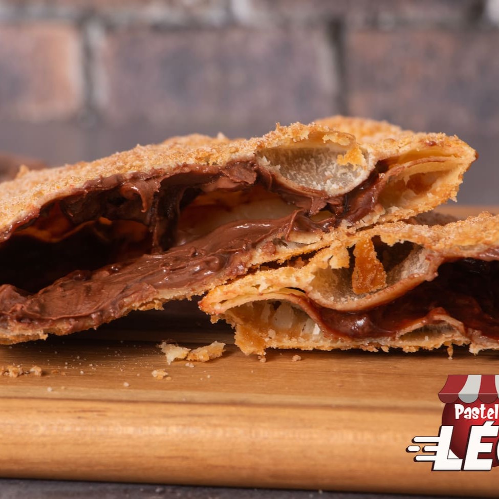 Delicioso pastel recheado com chocolate ao leite! Acompanha açúcar e canela! (Não é possível retirar ou acrescentar ingredientes. Imagens ilustrativas) _ _#carne#queijo#pastel#calabresa #Catupiry#palmito#atum#chocolate