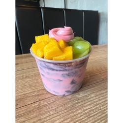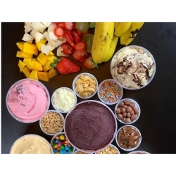 Monte seu pote com acompanhamentos, frutas, açaí, sorvetes e coberturas .Obs: os acompanhamentos, frutas, açaí, sorvetes e coberturas são montados no mesmo pote!