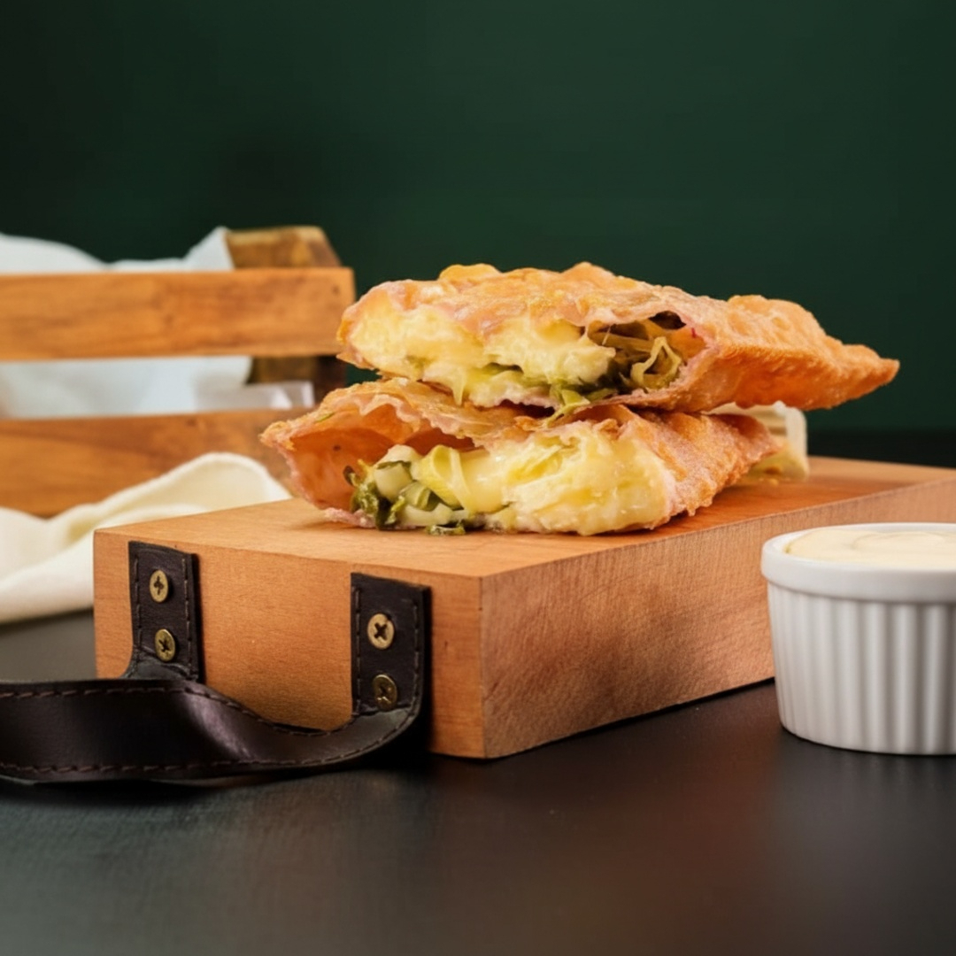 Imagine um pastel divinamente saboroso, recheado com uma escarola cuidadosamente refogada na manteiga e temperada com especiarias selecionadas pelo renomado Chef Ramiro. Esta criação esplêndida é complementada por um queijo de primeira qualidade, que derrete suavemente na boca, proporcionando uma experiência gastronômica incomparável. Este prato, um dos mais pedidos e favoritos da galera, está com