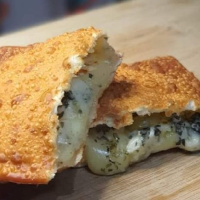 Cart Nonna Romeu e Julieta - Massinha de pastel aberta e recheada com goiabada cremosa, requeijão e Muçarela. 6cm diâmetro