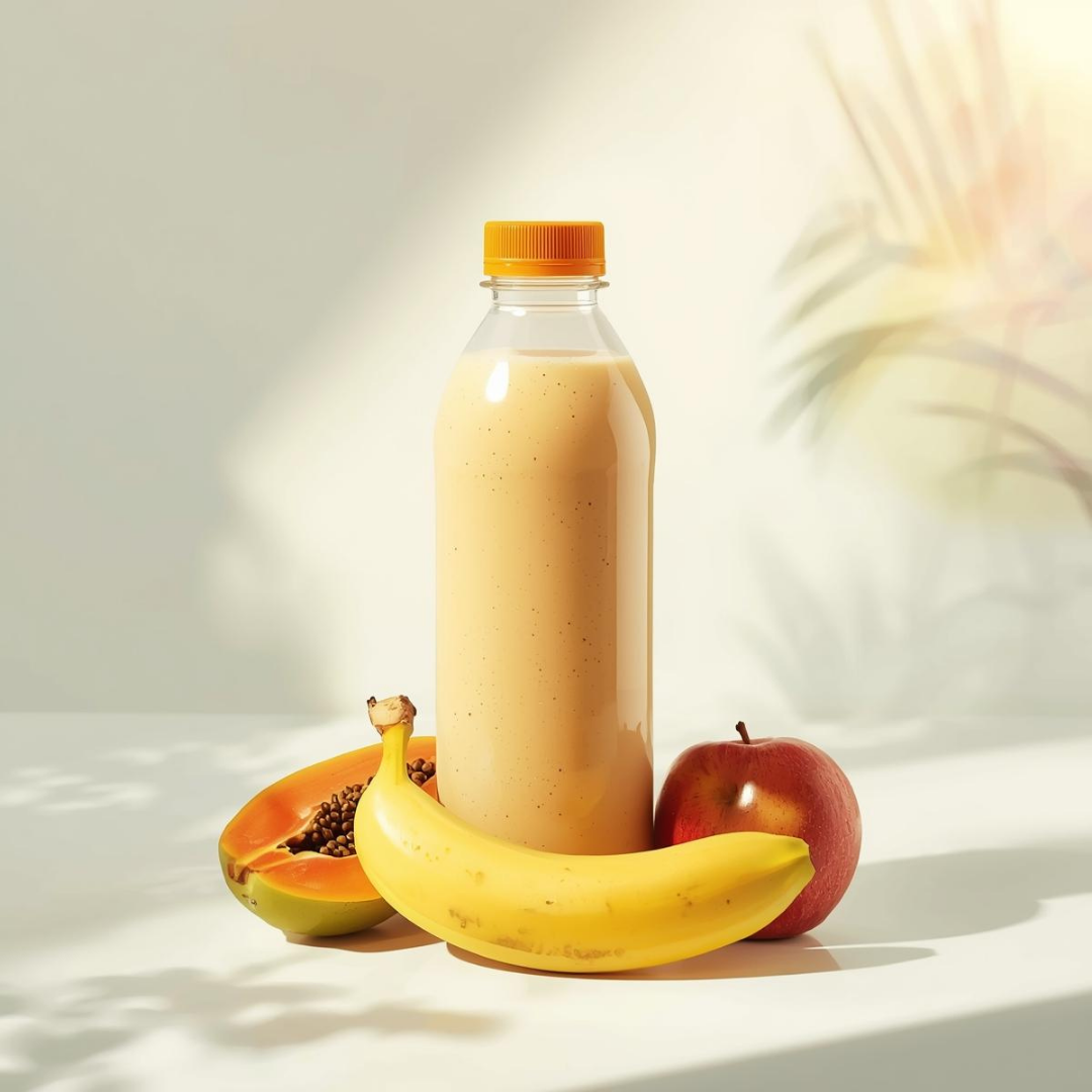 Mamão Maçã e Banana com leite frutas selecionadas