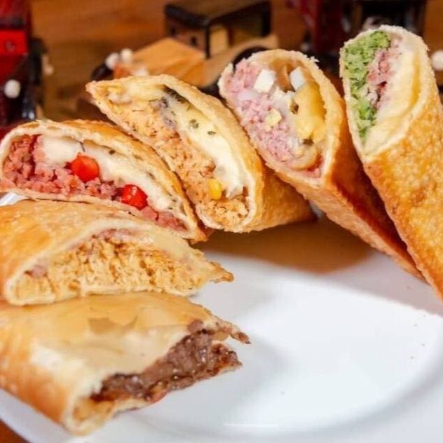 Combo de 2 pasteis salgados acompanhados com 1 pastel doce para finalizar.