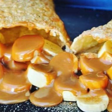 Massa crocante com recheio de doce de leite e pedaços de banana, empanada com açúcar e canela. Pastel pastel pastel pastel pastel pastel pastel pastel pastel pastel pastel pastel pastel pastel pastel pastel pastel
