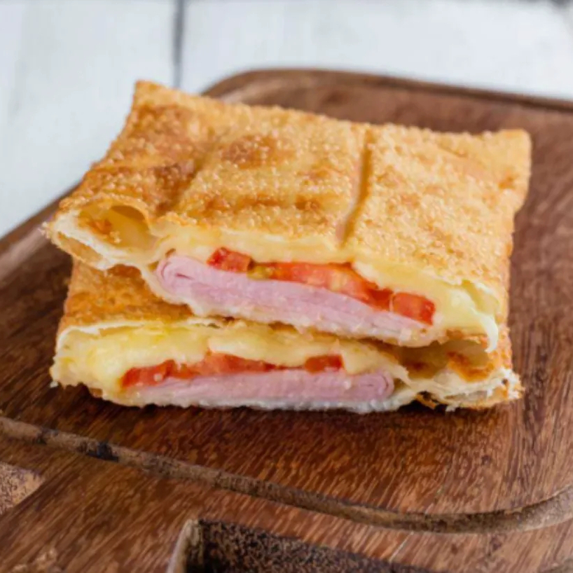 Pastel Tradicional Recheado com Queijo Mussarela Presunto Tomate e Oregano