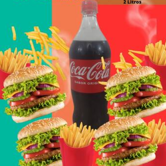 Pão com 2 Hamburguer Artesanal de Costela, Queijo Tipo Prato, Cebola, Alface e Tomate+100grs de Batatinha Frita+ 1 refrigerante lata a nossa escolha "Imagem meramente ilustrativa"