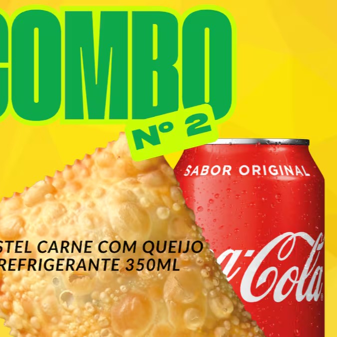 Escolha entre um delicioso pastel tradicional de 22cm sabor carne com queijo ou frango com queijo acompanhado de um refrigerante 350ml.