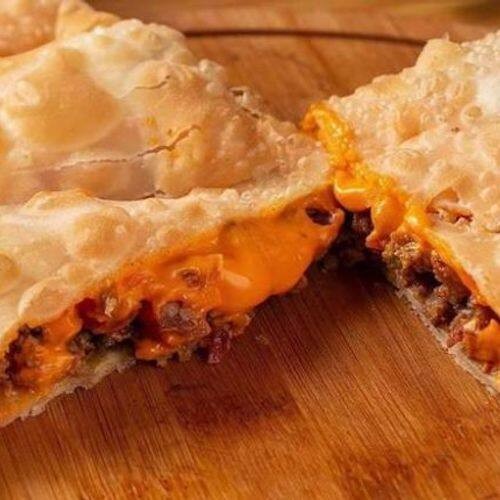 Delicioso pastel de 22cm recheado com carne moída refogada com uma porção generosa de Catupiry Original. Pastel montado e frito na hora, em óleo de algodão, o que garante uma fritura mais leve e também um pastel sequinho e crocante.