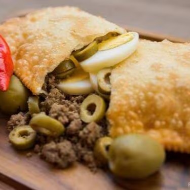 Delicioso pastel de 22cm recheado com carne moída refogada, azeitona picada e ovo cozido picado. Pastel montado e frito na hora, em óleo de algodão, o que garante uma fritura mais leve e também um pastel sequinho e crocante.