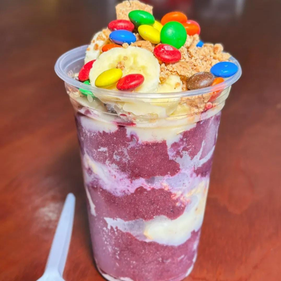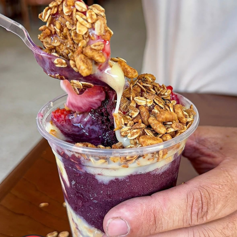 1 açaí de dois litros + um leite condensado caixa + duas paçoquitas + um potinho de granola