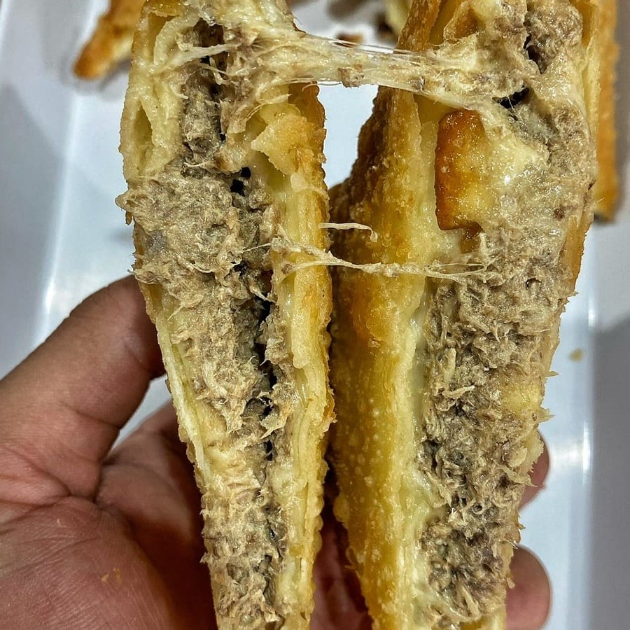 Peito de peru, mussarela, gorgozola e Philadelphia.