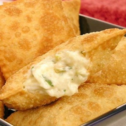 Experimente o Pastel 4 Queijos, recheado com uma combinação de mussarela, provolone, queijo branco e Catupiry. Uma explosão de sabores cremosos e marcantes para os amantes de queijo!