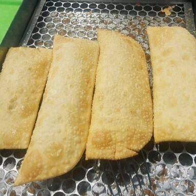 Delicioso pastel recheado com calabresa e queijo mussarela, montado e frito na hora!