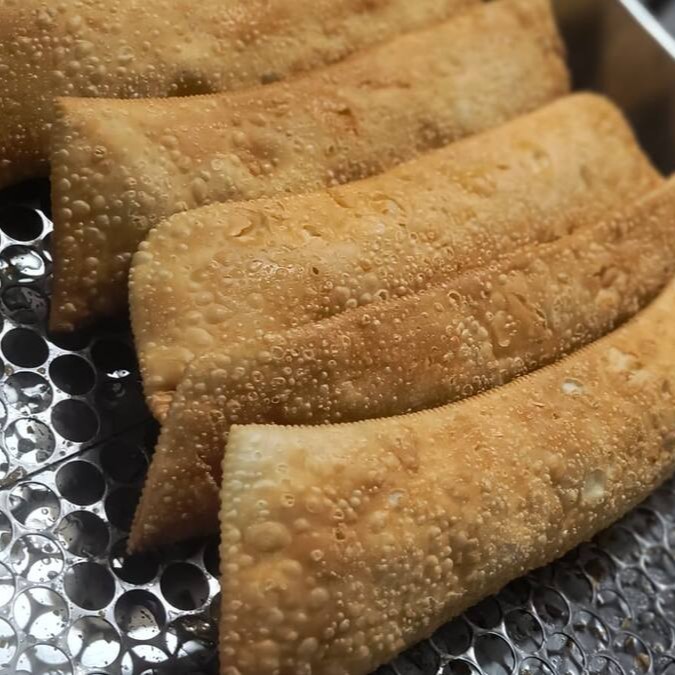 Delicioso pastel recheado com carne moída temperada e Catupiry, montado e frito na hora!