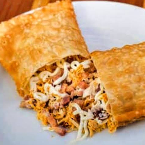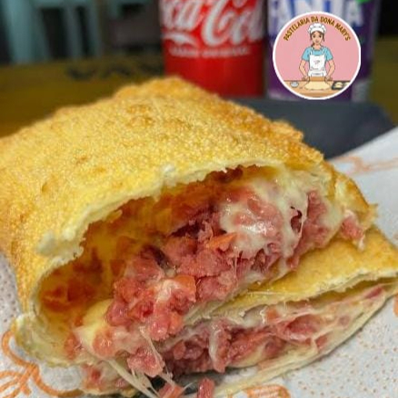 Pastel com carne, queijo, calabresa, frango, catupiry e cheddar