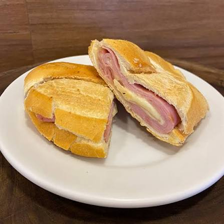 Sanduíche misto quente feito com pão de forma, presunto e queijo derretido, uma opção saborosa e rápida.