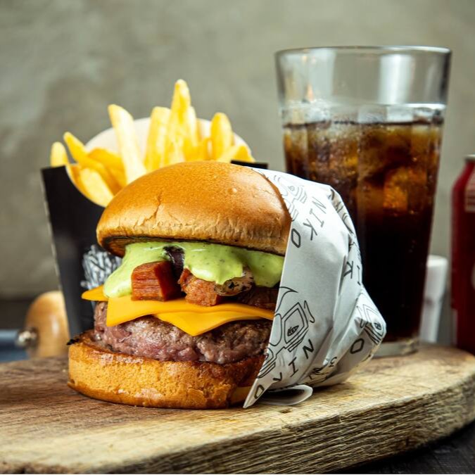 No pão de brioche, fatias de queijo cheddar cobrindo 150g do nosso suculento blend bovino, cebola caramelizada na hora, bacon crocante e nossa maionese da casa.