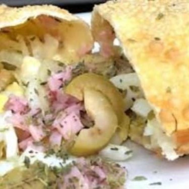 Recheado de Carne mussarela presunto ovos picadinho azeitonas e Catupiry uma deliçia pra matar a fome :)