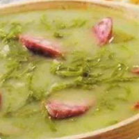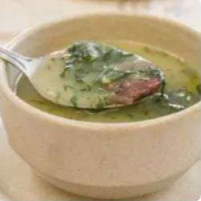 Delicioso e saboroso caldo verde, feito com batata cozida, couve e linguicinha
