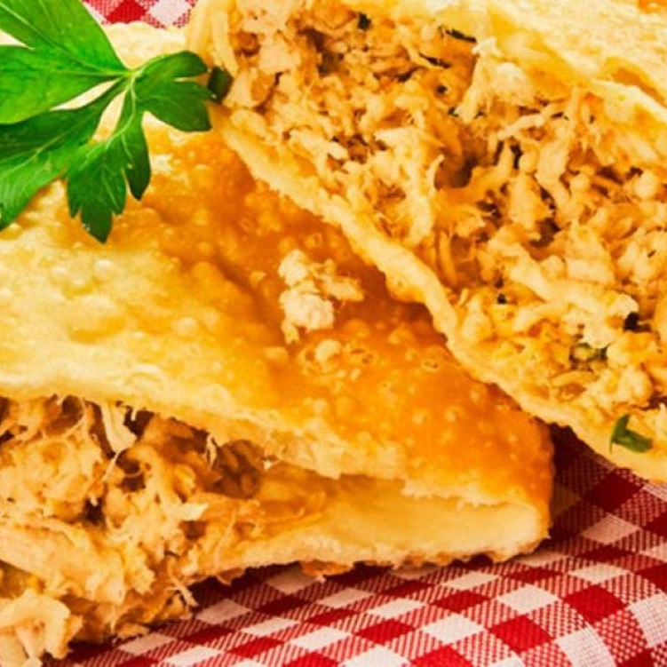 Frango desfiado do filé do Peito artesanalmente , bem temperado . Com requeijão cremoso Catupiry Original Massa 21 cm *Imagem ilustrativa #tags: pasteis - salgado - salgadinho - famoso - queridinho - top - clássico - de feira - de vento
