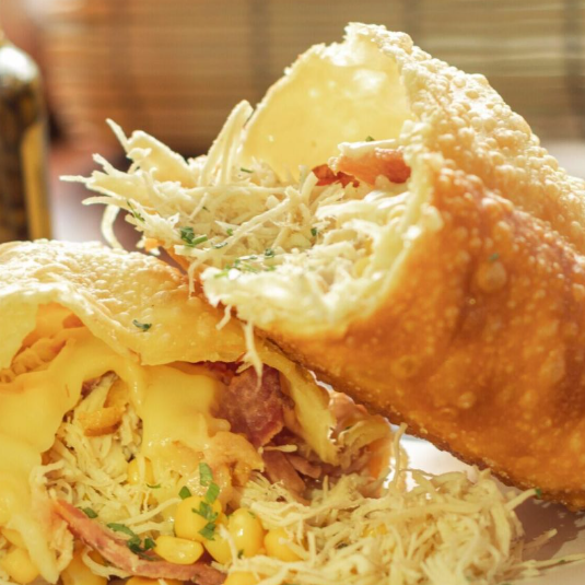 Carne, queijo, catupiry, ovo, azeitona e tomate