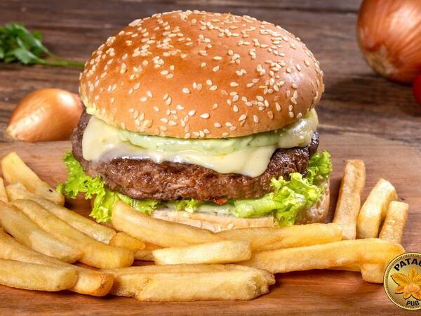 Hambúrguer, Queijo, Alface, Tomate, Molho Verde, Batata Frita