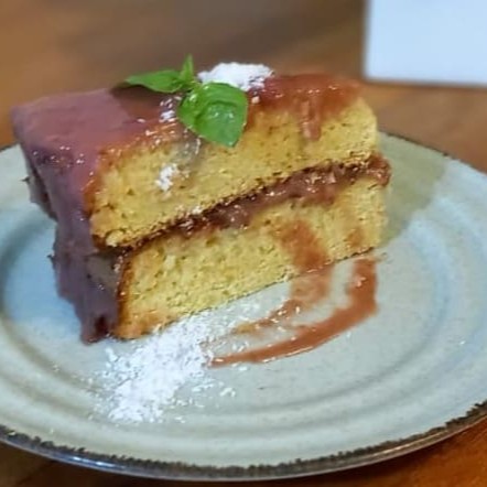 Delicioso caldo com verdura, merluza e tempero da casa. Acompanhado de arepa de canjica.