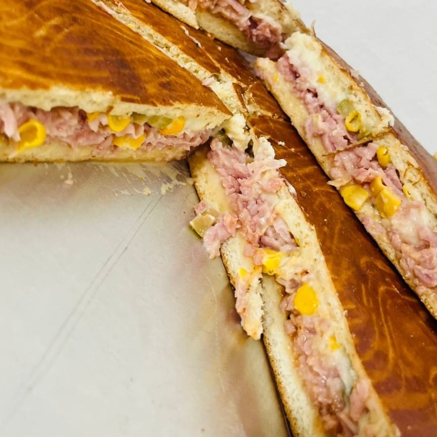 Torta irresistivél, com recheio cremoso de presunto e queijo e temperos especiais .