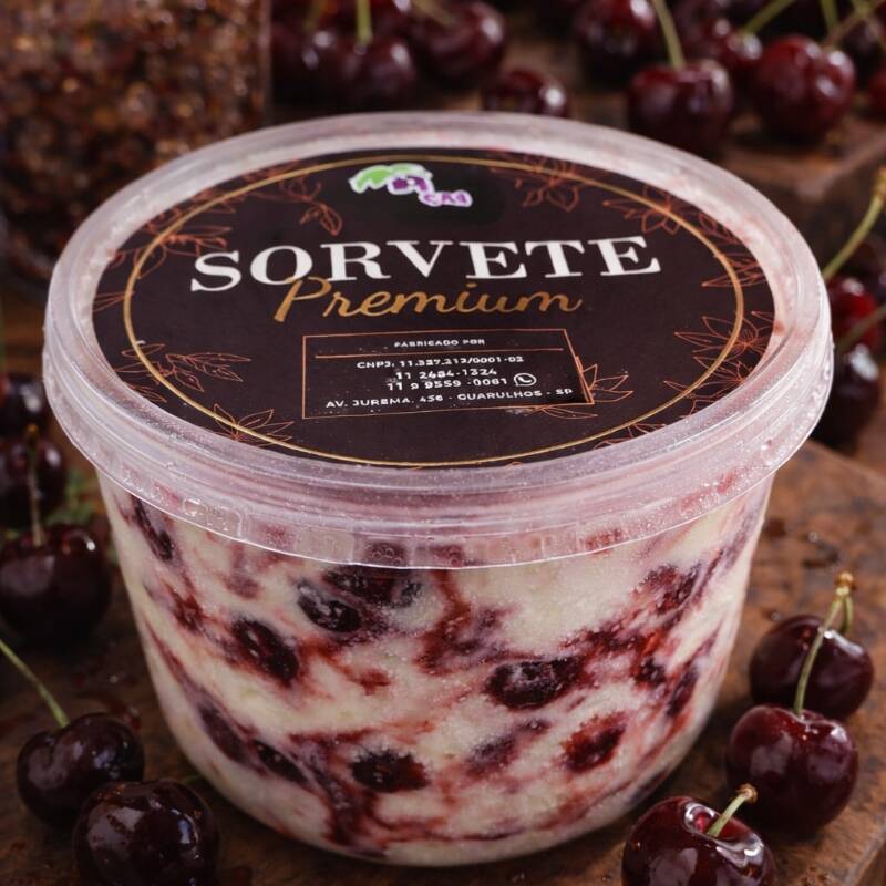 Sorvete de Yogurte com Amarena: a cremosidade suave do iogurte combinada com a intensidade da calda de cereja amarena, levemente ácida e marcante. Um equilíbrio perfeito entre doce e refrescante, com uma textura aveludada e sabor irresistível a cada colherada.