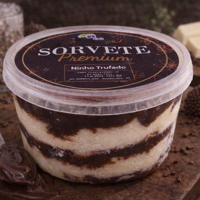 Sorvete super cremoso de Ninho com camadas generosas de trufa de chocolate. Doce na medida certa e simplesmente irresistível! 🤎🍫