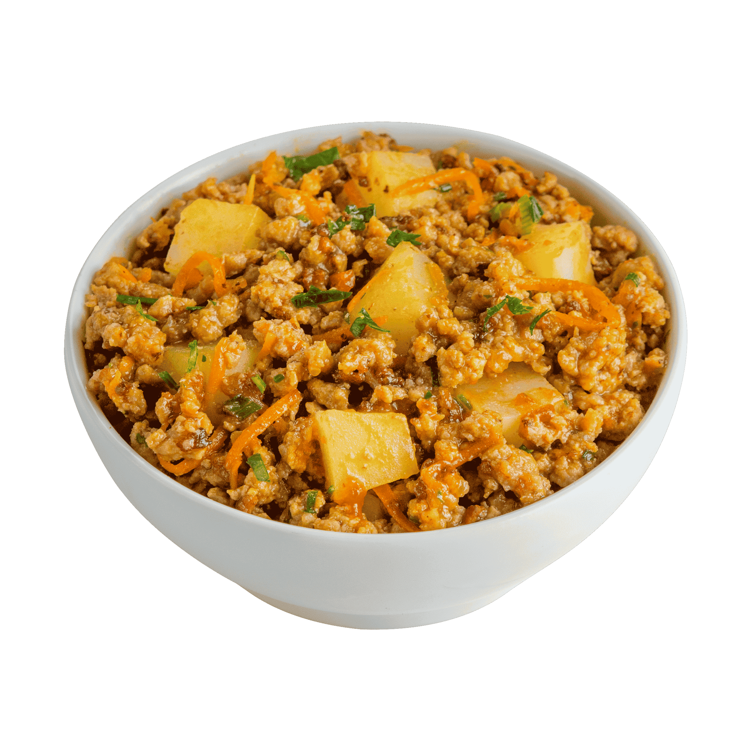 Carne moída com Legumes é uma deliciosa combinação de carne moída caseira com cenoura e batata, acompanhada de arroz integral, feijão, farofa de alho e um cremoso purê de batata. Uma opção nutritiva para o dia a dia. *Não é possível modificar o prato.