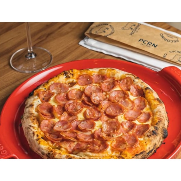 Sabor que vem do tempo! Nossa pizza grande de calabresa conta com o diferencial da massa de longa fermentação, resultando em muito mais sabor e crocância. Leva molho de tomate artesanal da casa, mussarela derretida e calabresa de alta qualidade. Uma escolha clássica, elevada a um novo nível de sabor.