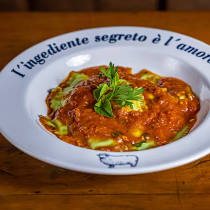 Ravioli de queijo de cabra com molho de tomates e orégano fresco