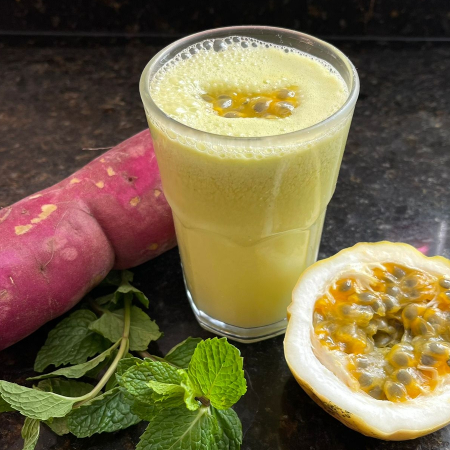 Água, Batata doce, maracujá e hortelã